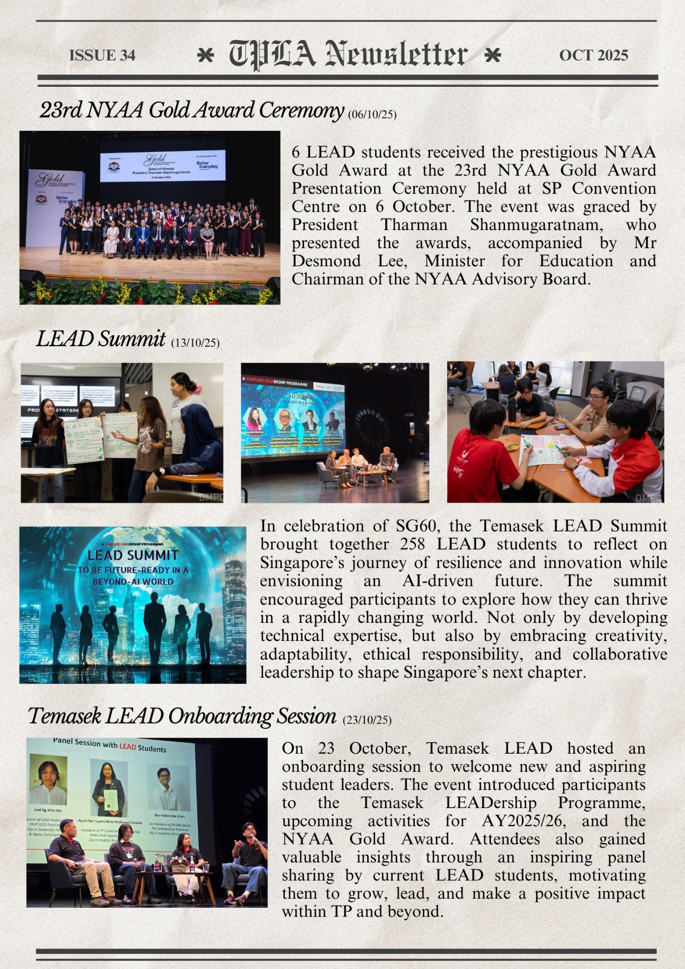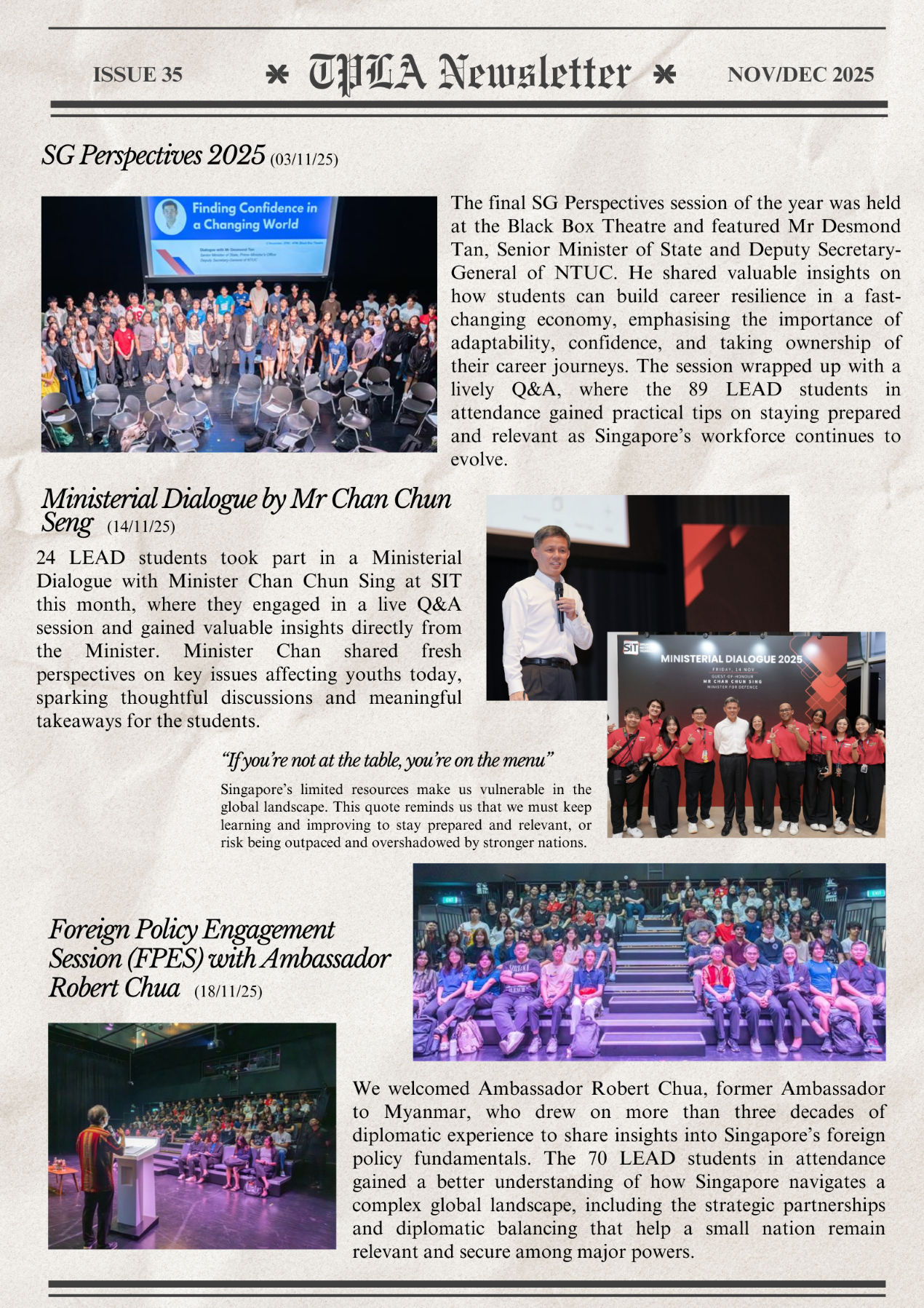 Check out our past and upcoming Temasek LEAD events through the monthly TPLA Newsletters. Enjoy reading and have fun participating!